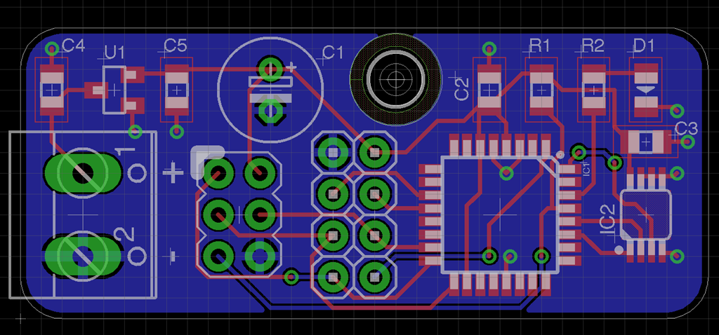 The physical dimensions are roughly 42mm by 18mm, which is nice and small. There’s one mounting hole and I rounded the corners of the board a bit to make it look nice.